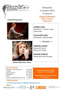 Le pianiste Joseph Moog et le violoniste Albrecht Menzel vous emmènent dans l’univers d’Ysaÿe, Lekeu, Chopin et Strauss le temps d’un concert.