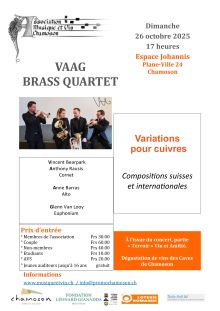 L’ensemble VAAG Brass Quartet vous propose des compositions suisses et internationales le temps d’un concert de variations pour cuivres.