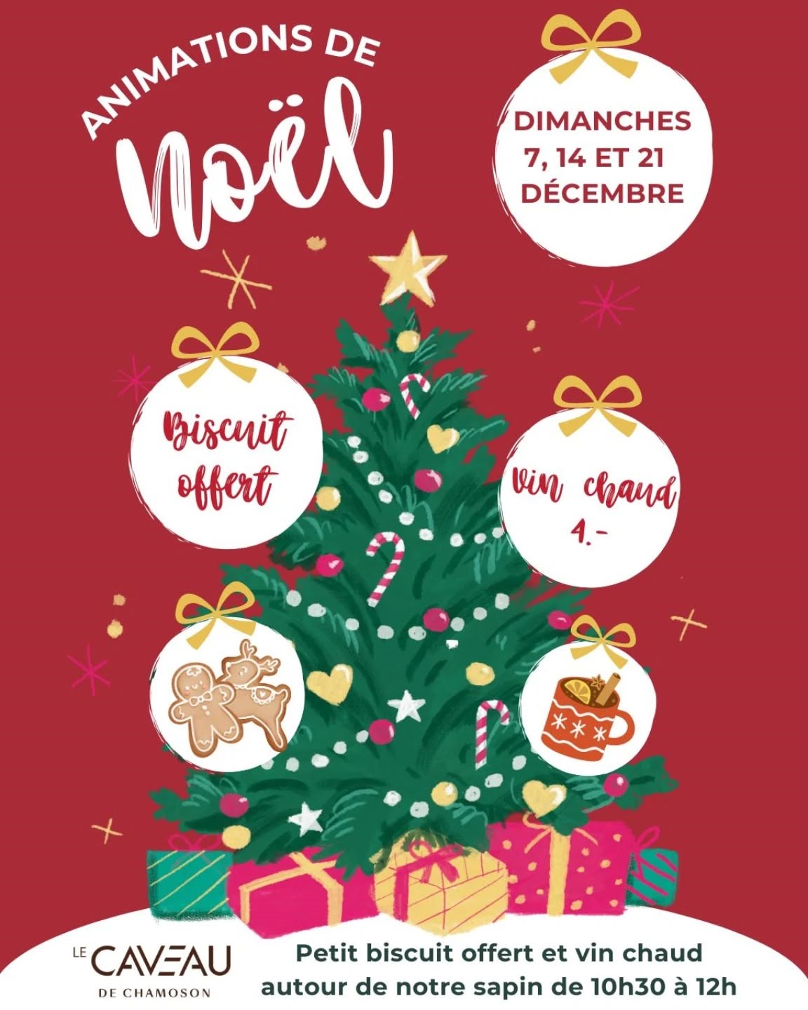 Les dimanches de décembre, de 10h30 à 12h00, venez déguster un bon vin chaud sur la terrasse du Caveau autour du sapin.