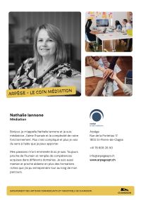 Bonjour, je m’appelle Nathalie Iannone et je suis médiatrice. J’aime l’humain et la complexité de notre fonctionnement. Plus c’est compliqué et plus je vois du sens à l’aide que je peux apporter. Mes passions m’ont emmenée là où je suis. Toujours proche de l’humain et remplies de compétences acquises dans différents domaines. Je suis aussi maman et proche aidante en plus des formations riches que j’ai pu entreprendre tout au long de mon parcours.